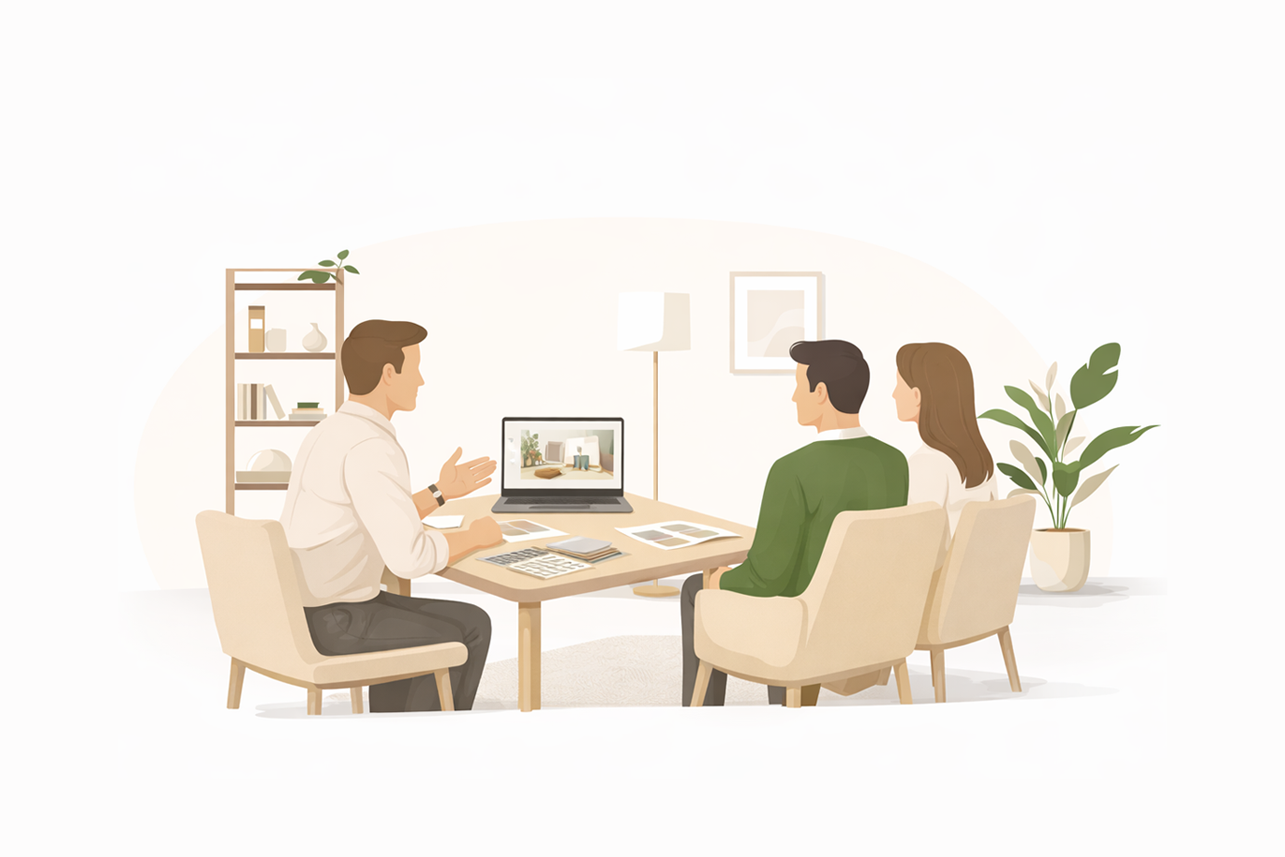 Klient przegląda aranżacje, realizacje i produkty